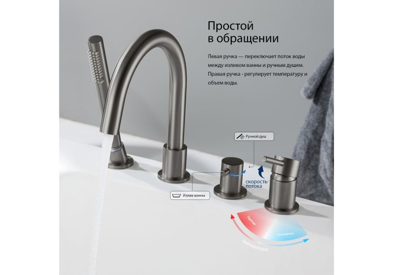 Смеситель на борт ванны Aquatek Европа AQ1348BGM оружейная сталь