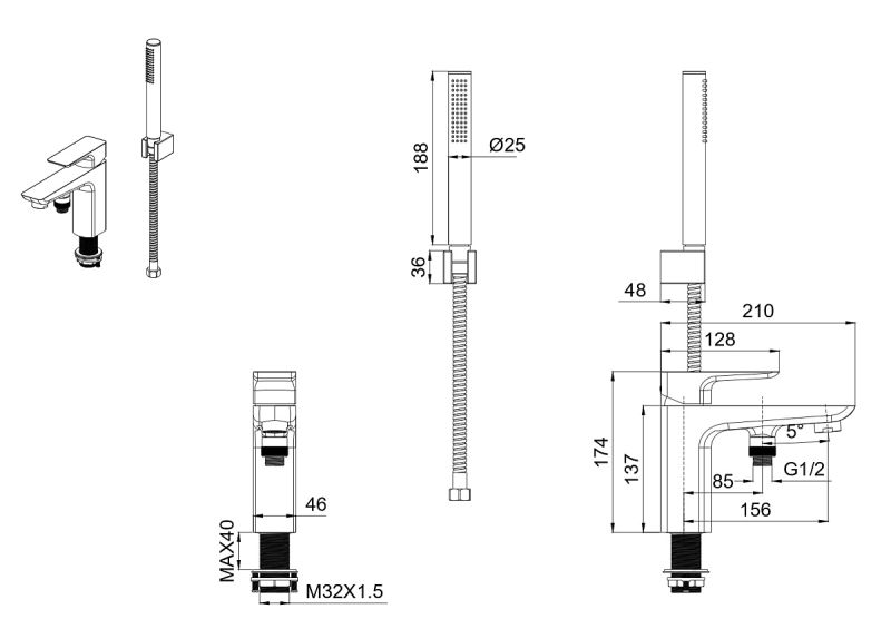 Тип товара Смеситель на борт ванны