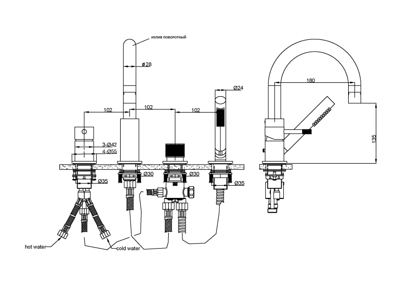 Смеситель врезной Boheme Uno 460, на борт ванны,