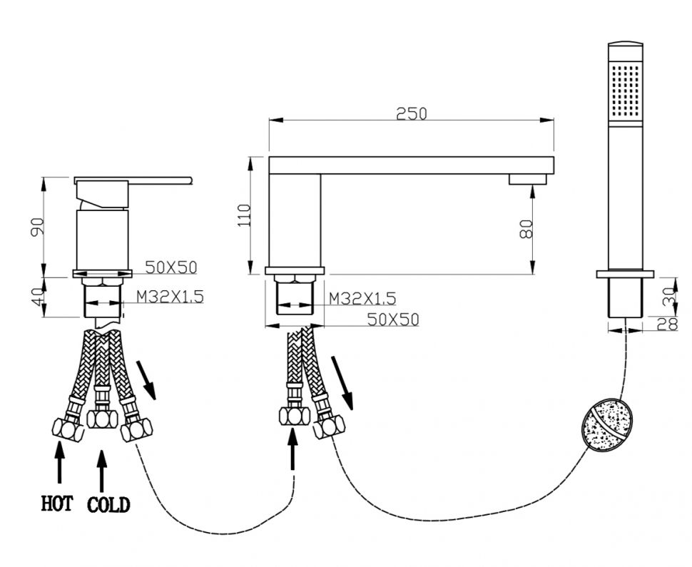 Смеситель на борт ванны Groсenberg GB6008 Хром