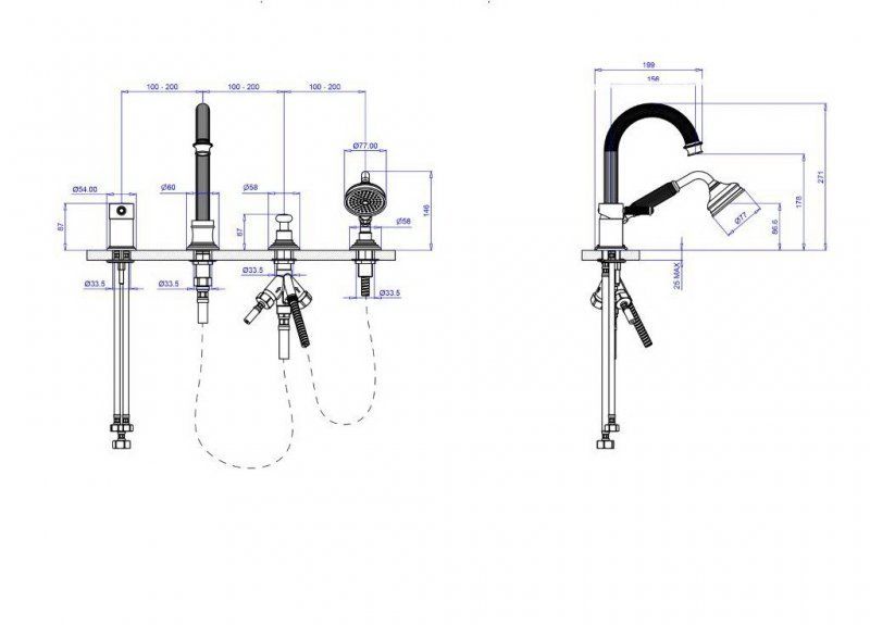 Оснащение: душевой шланг, душевая лейка, аэратор, гибкая подводка, дивертор,смеситель