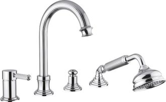 Смеситель на борт ванны однорычажный с выдвижным душем и переключателем Cezares OLIMP-BVDM-01-L купить