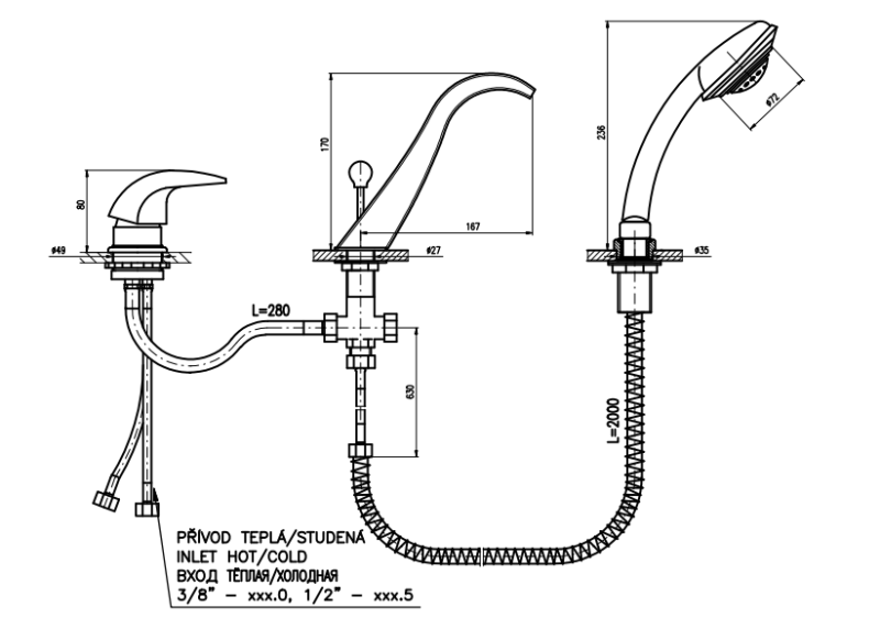 С ручным душем, Каскадный излив