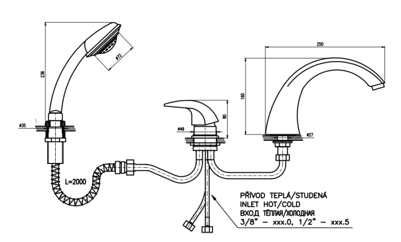 С ручным душем, Каскадный излив