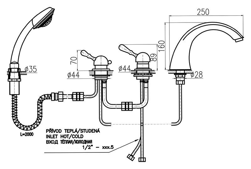 Смеситель на борт ванны Rav Slezak Labe L469.5PSM бронза
