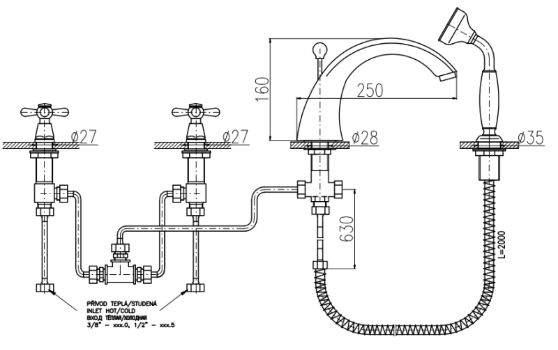 Смеситель на борт ванны Rav Slezak Morava retro MK369.5SSM бронза