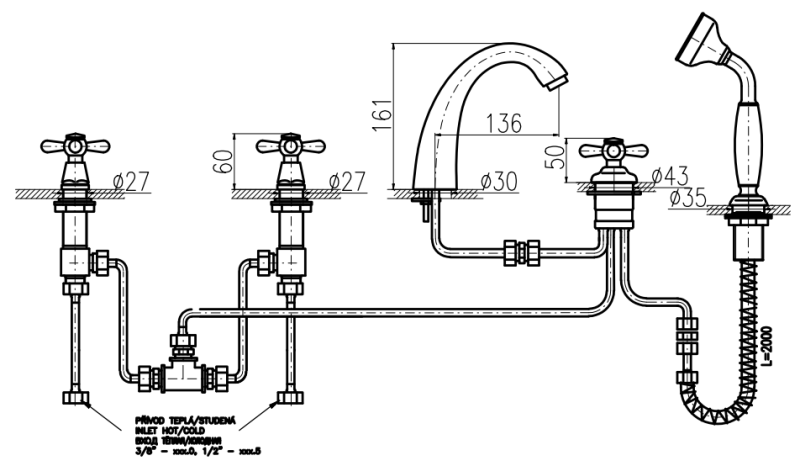 Смеситель на борт ванны Rav Slezak Morava retro MK376.5PSM бронза