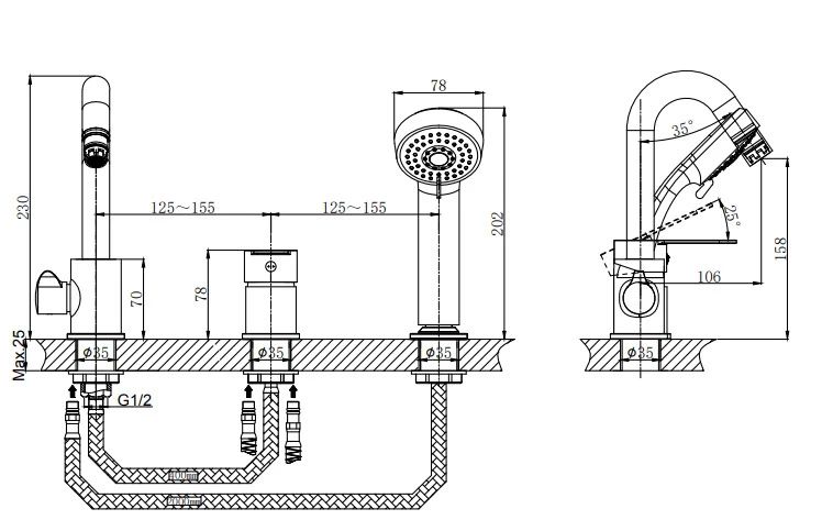 Тип:смеситель для ванны и душа