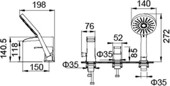 - Смеситель для ванной, врезной