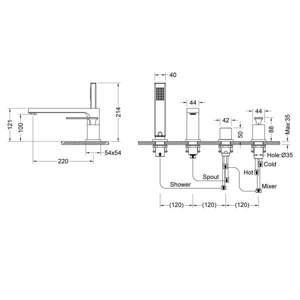 Смеситель на борт ванны Timo Torne золото матовое 4330/17Y