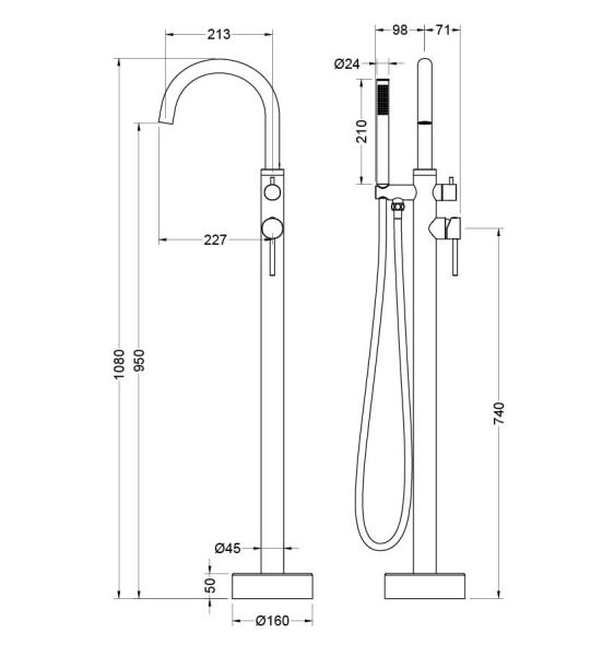 Смеситель напольный для ванны Aquatek Европа AQ1345BGM шлифованный чёрный хром