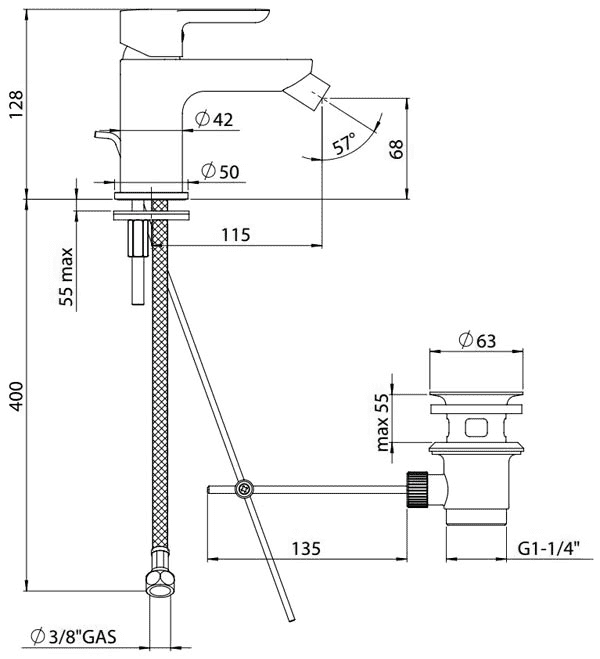 - Высота излива:68