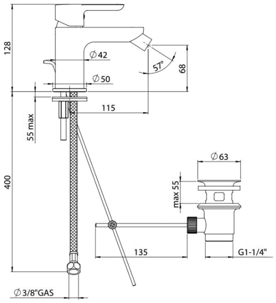 - Длина излива:115