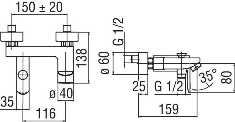 - Длина излива:159