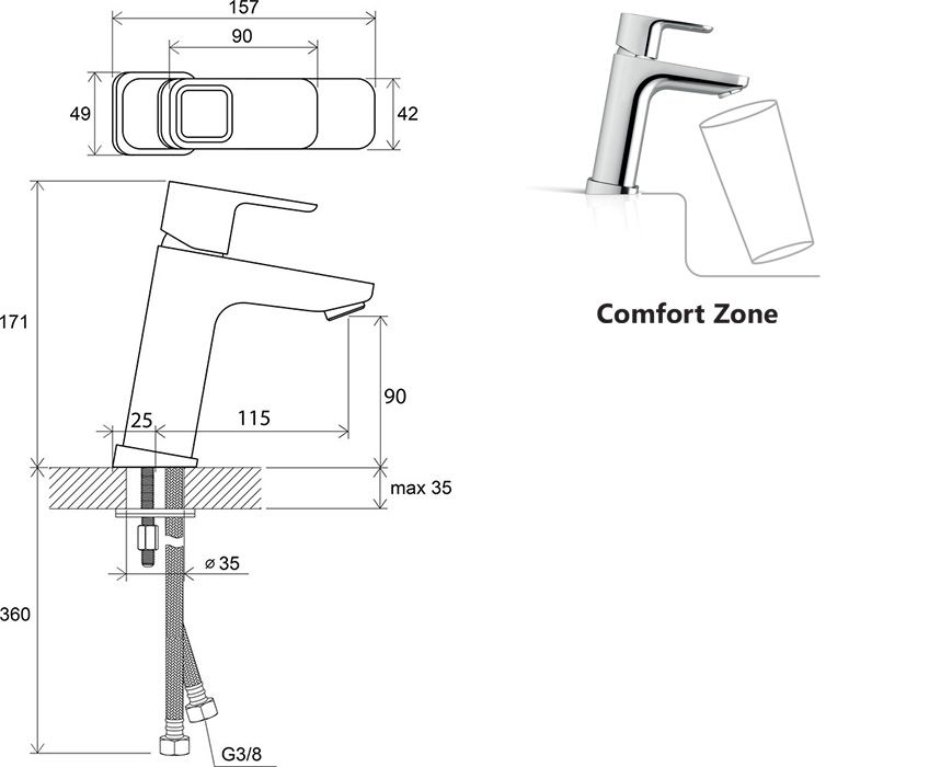 - высота смесителя: 170 мм - удлиненный для большего комфорта