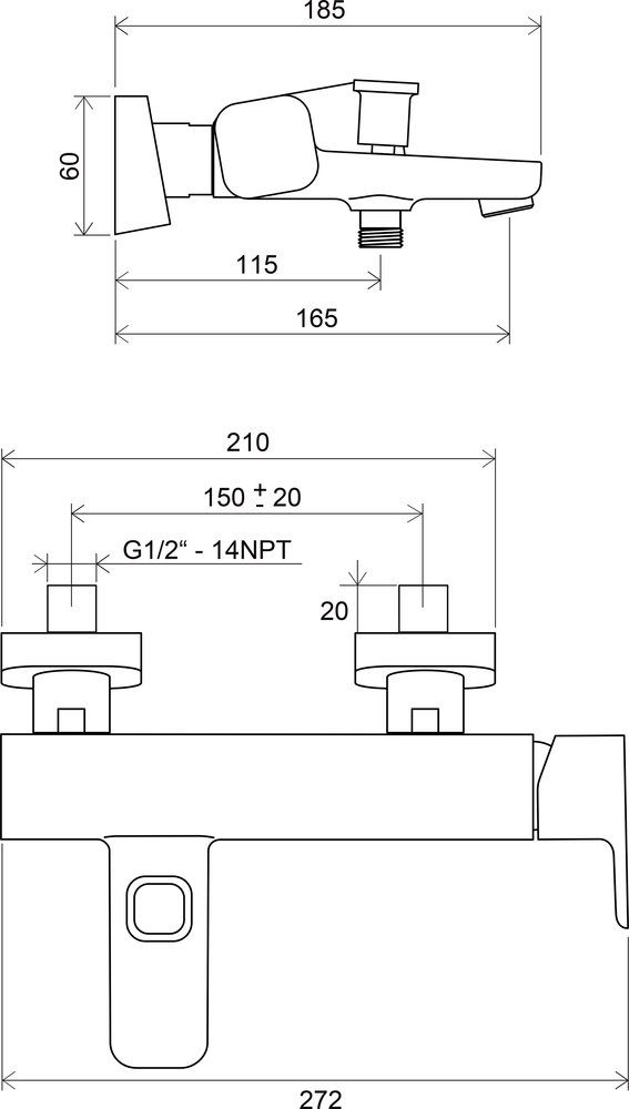 - межосевой размер смесителя : 150 мм