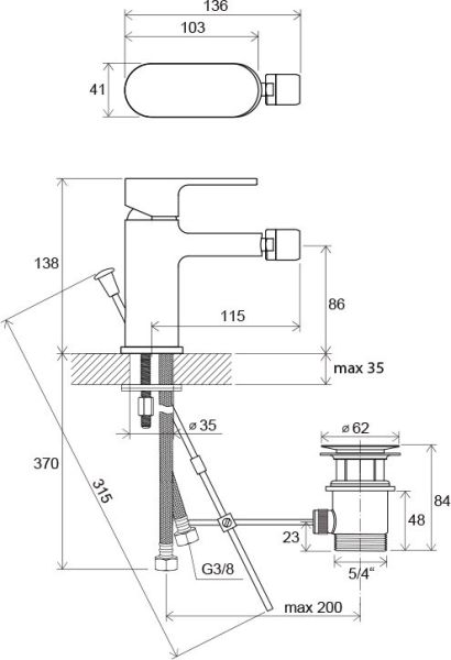 - соединительные шланги: гибкий 400 мм, диаметр G3/8