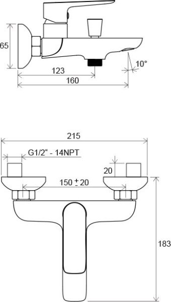 - высота смесителя : 150 мм