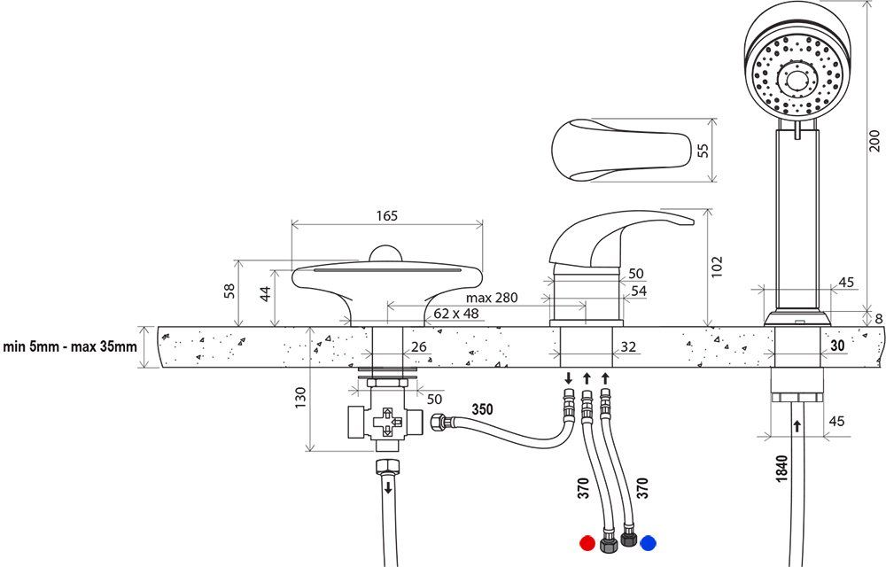 - исполнение: переключение ванна/душ; с лейкой.