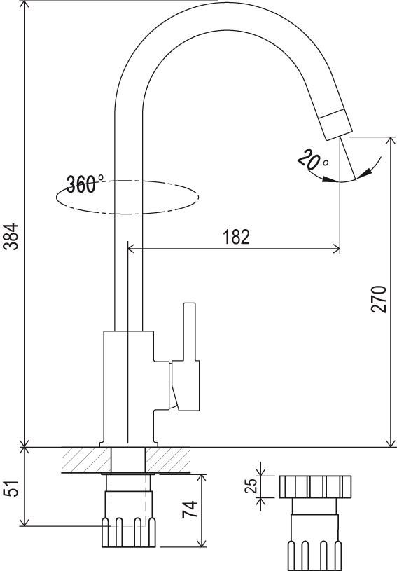 Пример минимализма и функциональности. Благодаря легкому управлению одной рукой кухонным смесителем максимально удобно пользоваться. Его универсальный дизайн легко вписывается в интерьер любой кухни и сочетается с остальным ее оборудованием.