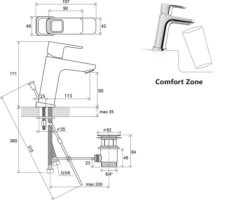 • высота смесителя: 170 мм - удлиненный для большего комфорта