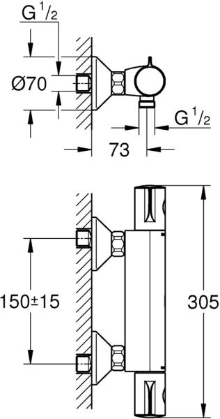 Вентильный термостат Grohe Grohtherm 800 обеспечивает комфорт во время принятия душа, поддерживая заданную температуру и напор воды. Он изготовлен из высококачественной латуни, что обеспечивает его коррозионную стойкость. Снабжен девиатором для переключения потоков воды. Устройство позволяет сократить расход воды, одним поворотом рукоятки прекращая ее подачу, например, во время намыливания. Эксцентрики снижают уровень шума льющейся воды. Встроенный фильтр не дает частицам из водопровода попасть внутрь, увеличивая срок службы оборудования и обеспечивая пользователя чистой водой.Обратный клапан препятствует оттоку воды в трубы при ее отключении. Для поддержания блеска глянцевую хромированную поверхность достаточно протереть мягкой салфеткой. Она обработана специальным составом soft-clean, закрывающим микропоры от проникновения загрязнений.Латунь