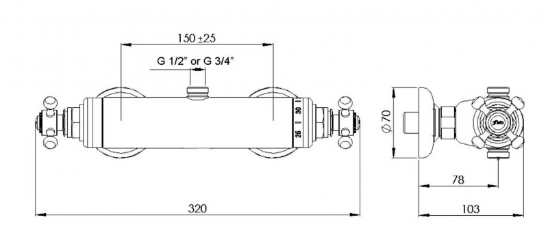 Смеситель термостатический для душа на один выход, верхнее (жёсткое) подключение, хром Cezares GOLF-DS-T-01