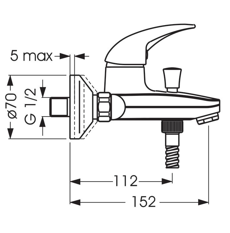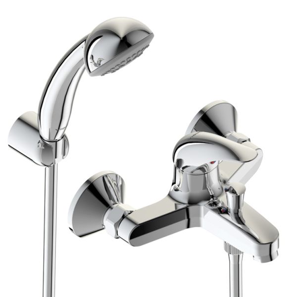 ORION Настенный смеситель для ванны/душа, душевой гарнитур в комплекте (душевая лейка Ø70 мм, металлический шланг 1500 мм, держатель для лейки)