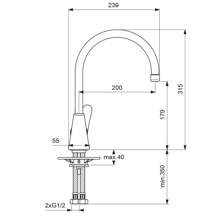 ORION Смеситель для кухонной мойки, рукоятка сбоку.