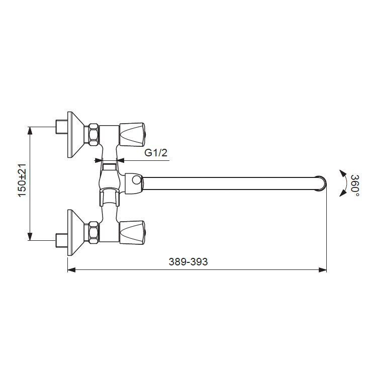 PRACTIC Смеситель для ванны/душа, трубчатый поворотный излив 320 мм душевой гарнитур в комплекте (душевая лейка Ø70 мм, металлический шланг 1500 мм, держатель для лейки).