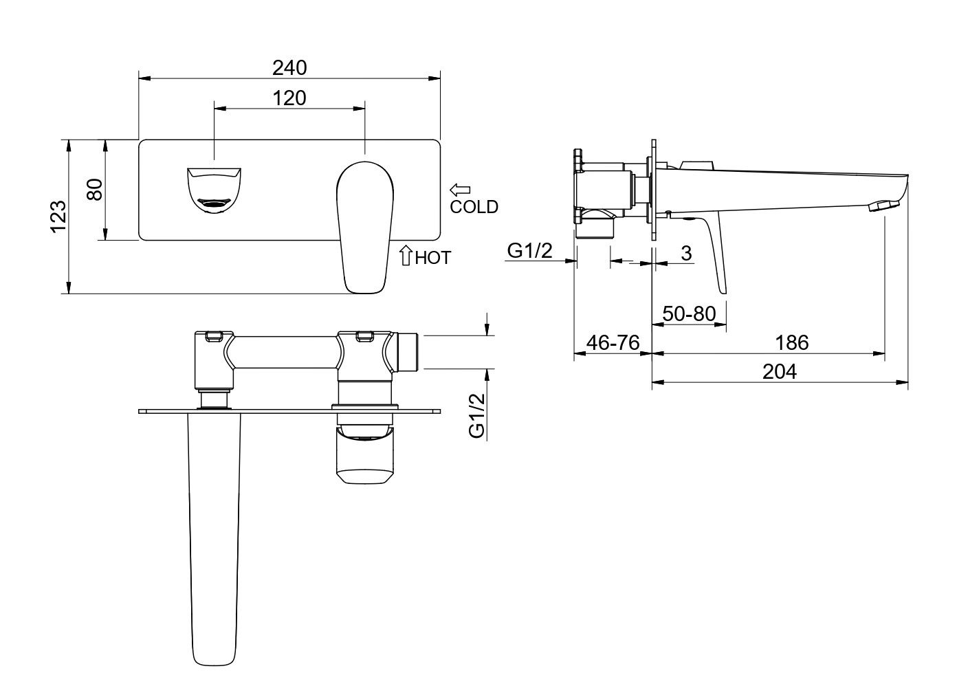 • Смеситель (внешняя и скрытая часть)