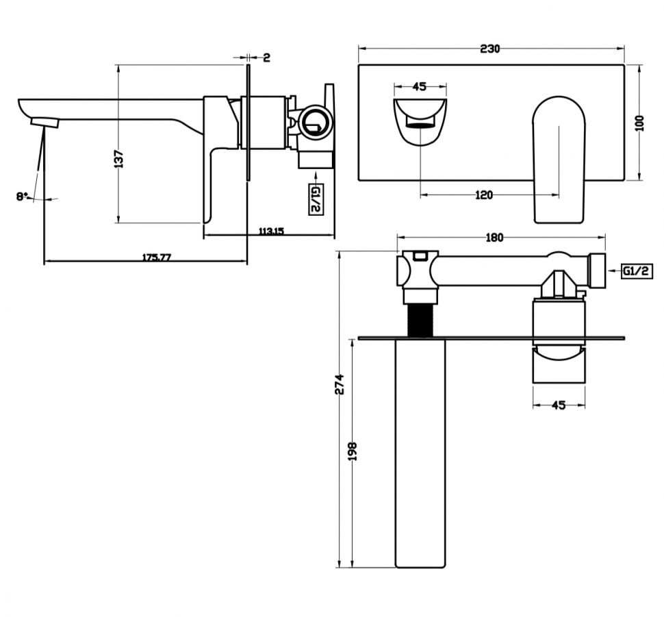 Смеситель встраиваемый для раковины Grocenberg GB599 Черный матовый