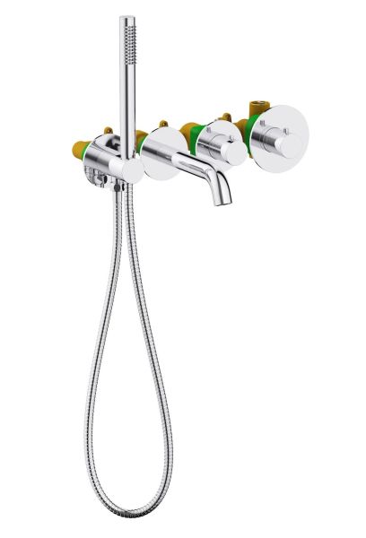 Встраиваемый смеситель с термостатом Timo Saona 2324 предназначен для монтажа в твердой или полой стене. Уникальная дизайнерская модель с раздельными горизонтальными блоками создаст неповторимый современный интерьер в ванной комнате. Основные преимущества встроенного смесителя: коммуникации, крепления и механизмы спрятаны в стену и видны только декоративные элементы, установить встроенный смеситель можно в любом месте. Термостатический картридж поддерживает стабильную температуру воды, обеспечивая максимально комфортные условия для принятия водных процедур. Стильная лейка-карандаш удобна в использовании и фиксируется на держателе с подключением шланга для душа. Регулировка температуры и напора воды осуществляется джойстиком справа. Переключение потока воды с излива на ручную лейку осуществляется поворотом ручки дивертора. Сложностей монтажа не возникает при установке смесителя опытным сантехником. Внимательно изучите инструкцию по монтажу и эксплуатации.