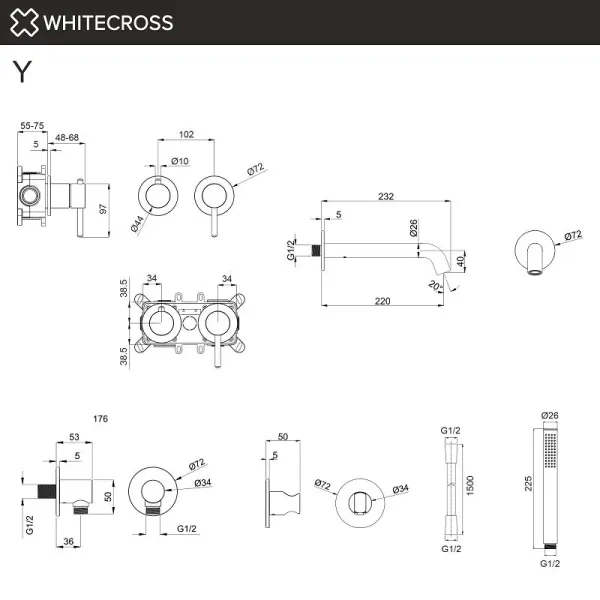 Смеситель встраиваемый WHITECROSS YSET1240GM оружейная сталь купить