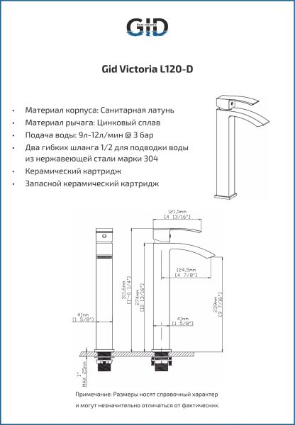 Смеситель высокий для раковины Gid Victoria L120-CH-D L120CHD хром