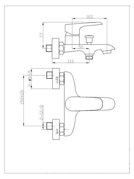 Смеситель для ванны однорычажный. С изливом.* Материал: латунь