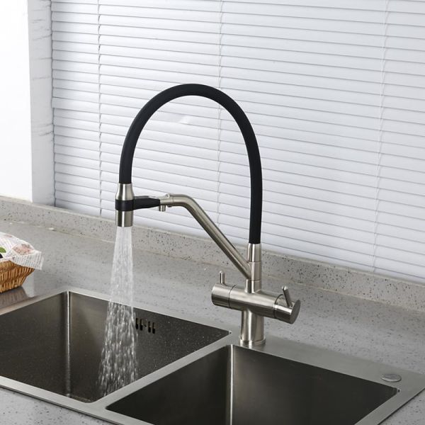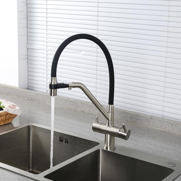 Смесители для кухни Gappo G4398-85 под фильтр с гибким изливом сатин/чёрный