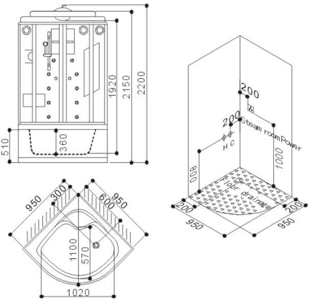 SSWW BU106B Душевая кабина 950X950X2200