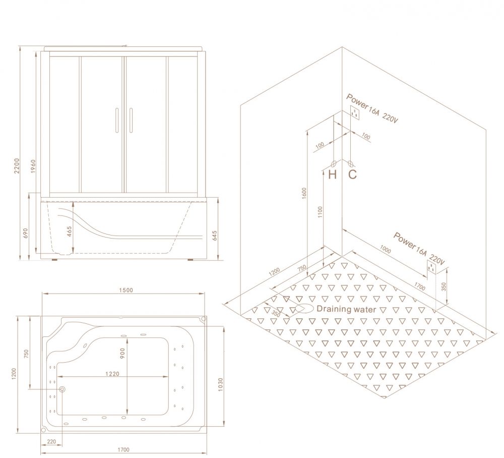 SSWW BU616 Душевая кабина 1700*1200*2180