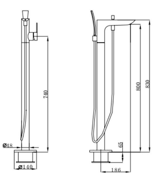 Смеситель напольный для отдельностоящей ванны.