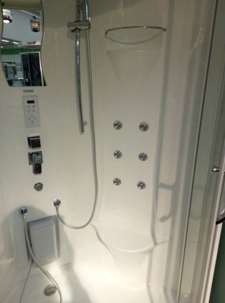 БЕССИЛИКОНОВАЯ сборка Ванны, поддоны экраны и задние стенки - 100% акрил, армированный по всей площади. Сенсорная электронная панель управления S167BTT с радио и функцией BLUETOOTH. Двери из полированного сверпрочного закаленого стекла EN 151120 6мм с антигрязевым покрытием. Ручной душ с силиконовыми форсунками и гладким шлангом. Верхний душ, дверные ручки, накладки на динамик и вентилятор - из нержавеющей стали. Быстросъемные металлические бесшумные двойные ролики. Душевая штанга с регулировкой лейки по высоте. LED подсветка. Слив\перелив из латуни. Массаж ног. Быстросъемный экран на защелках со скрытыми креплениями