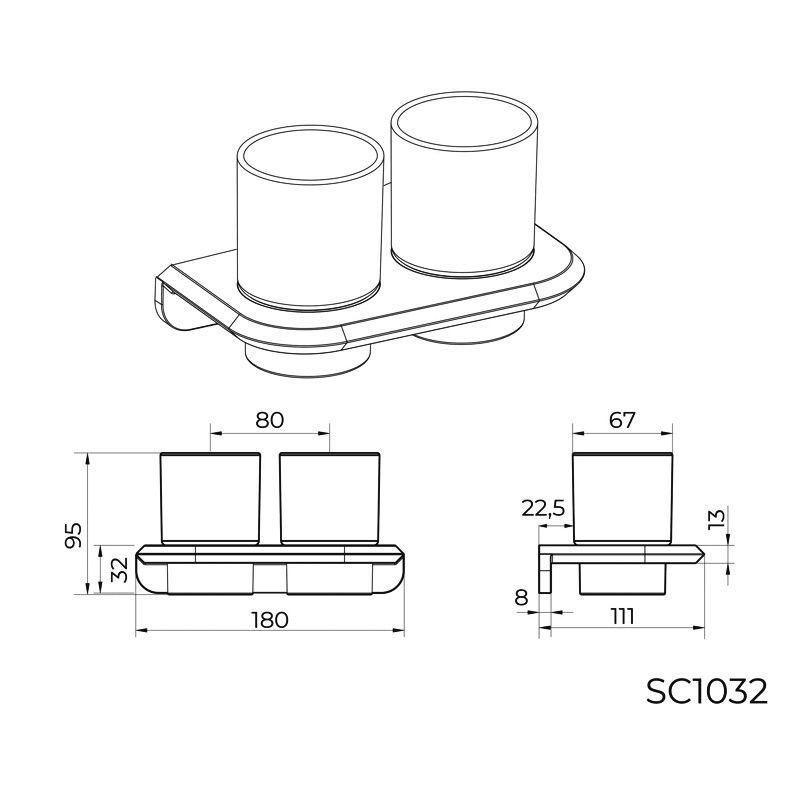 Стакан для ванной комнаты двойной Knotlor SC1032GM, оружейная сталь