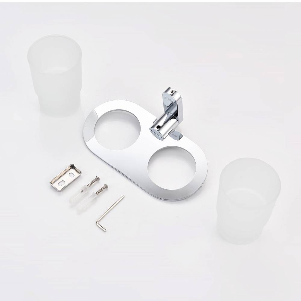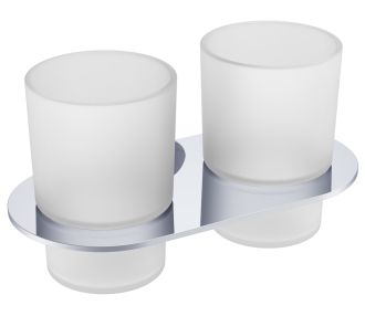 Raglo R300.08 Два стеклянных стакана с держателем. Форма округлая, цвет - хром, глянцевое покрытие. Крепление в комплекте.
