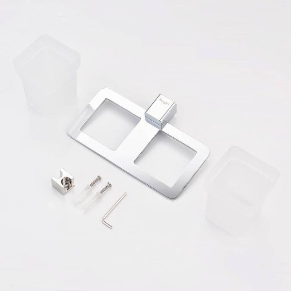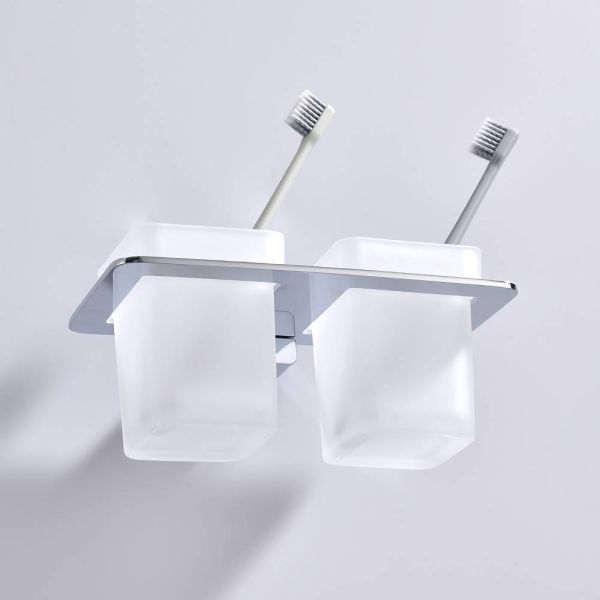 Дизайн: Держатель выполнен в цвете хром, что придает ему современный и элегантный вид. Лаконичный дизайн стаканов гармонично сочетается с любым интерьером ванной комнаты.