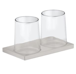 KEUCO EDITION 11 Держатель на два стакана, в комплекте с хрустальными стаканами, никель шлифованный