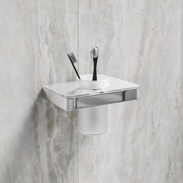 Стакан для зубных щёток Lemark Glass Line 9731034 с держателем хром/белое стекло купить