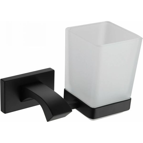 Стакан в ванную на стену Gappo G0706-6, цвет черный, стакан из стекла, держатель из латуни.
