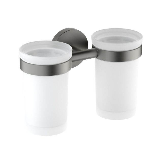 Стакан с держателем двойной Aquatek Европа AQ4117BGM шлифованный чёрный хром