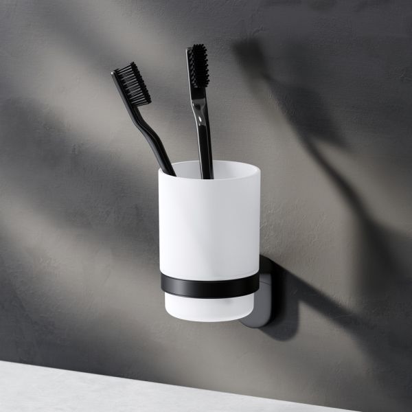 Стакан с настенным держателем в глубоком черном цвете из коллекции Х-Joy, чтобы самое необходим... Подробнее