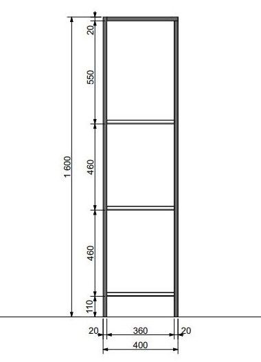 - Стеллаж (ш/в/г): 400х1600х300 мм